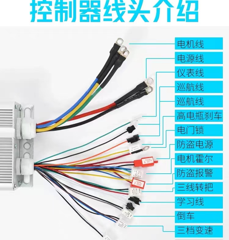 Электрический бесколлекторный двухрядный модифицированный трехколесный контроллер, 60v, 72v, 1520W, высокая мощность