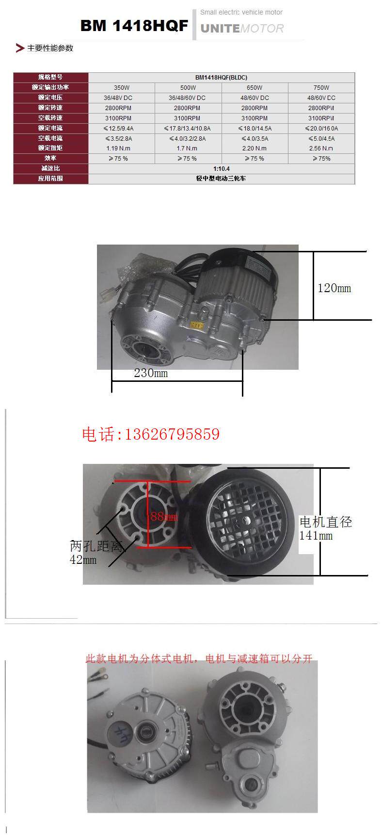 尤奈特 Дифференциальный бесколлекторный мотор, электрический трехколесный велосипед, аксессуары, 500W, 48v