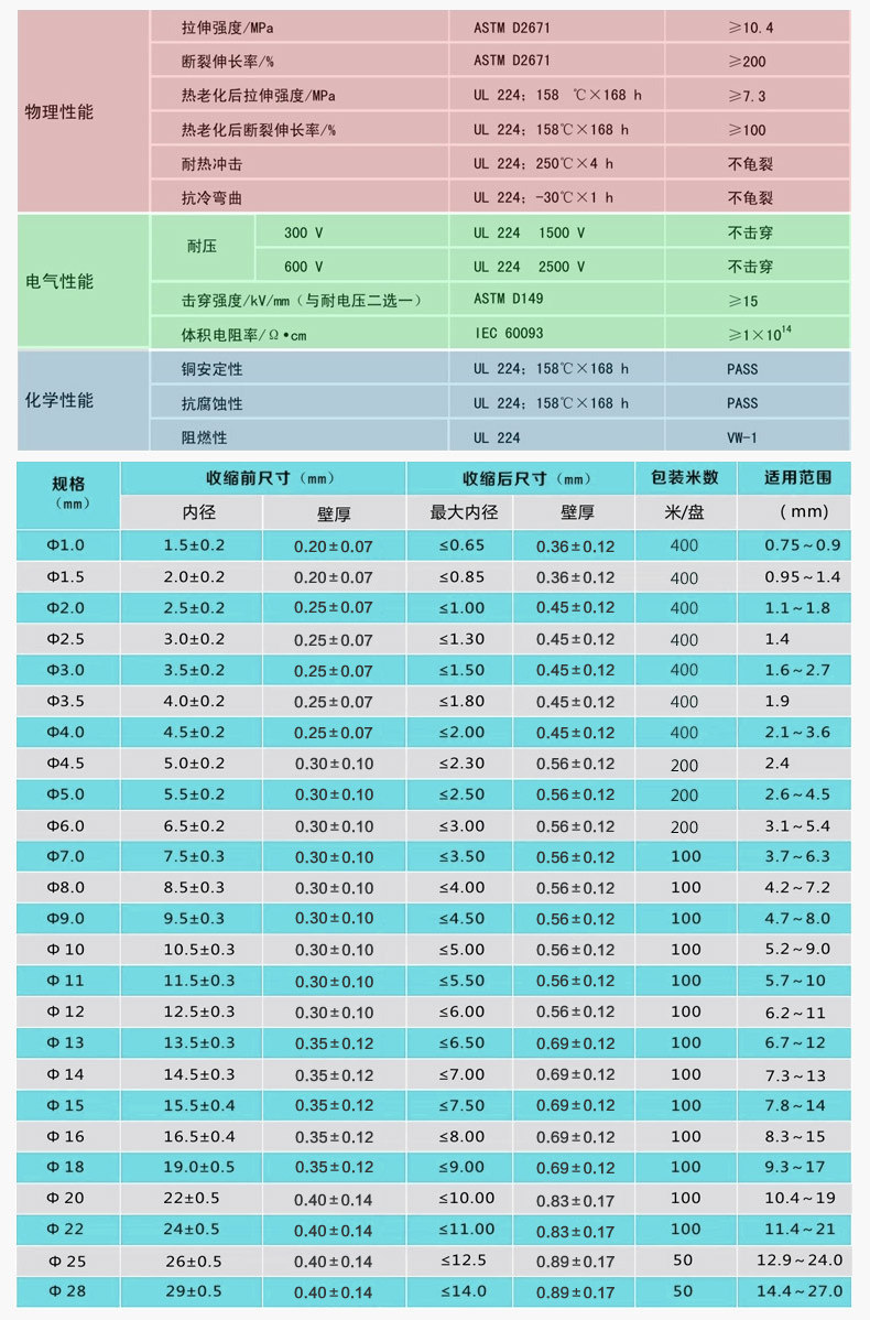 Термическая трубка без рукавов.FSFR-125HФизические и химические электрические характеристики