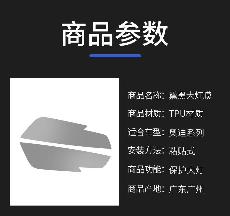 Он подходит для Audi A4L/A6L/Q5L BNARDED Big Light Film/A3/Q3/Q7/A5/A7 Modified Black Warrior Film