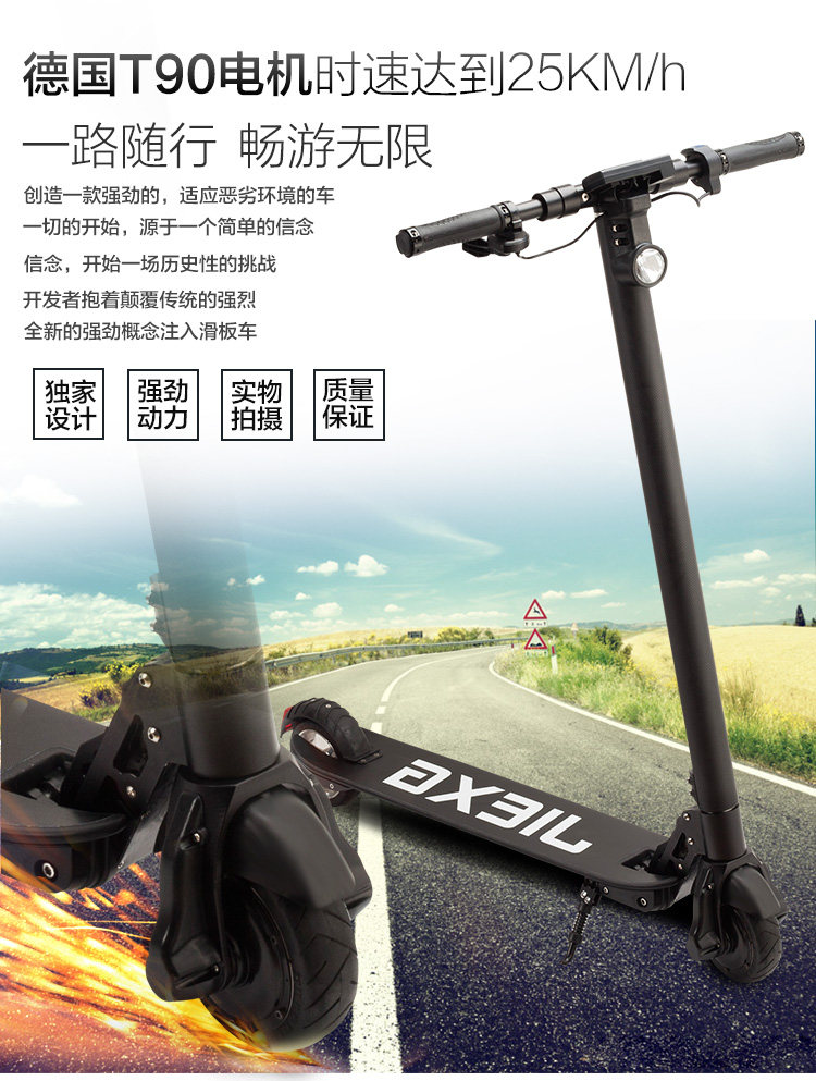 Электрический маленький складной самокат из углеродного волокна для уличного катания