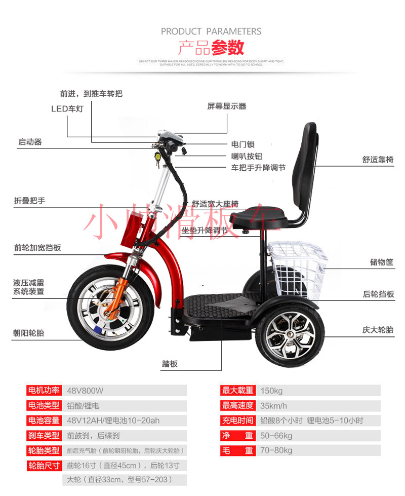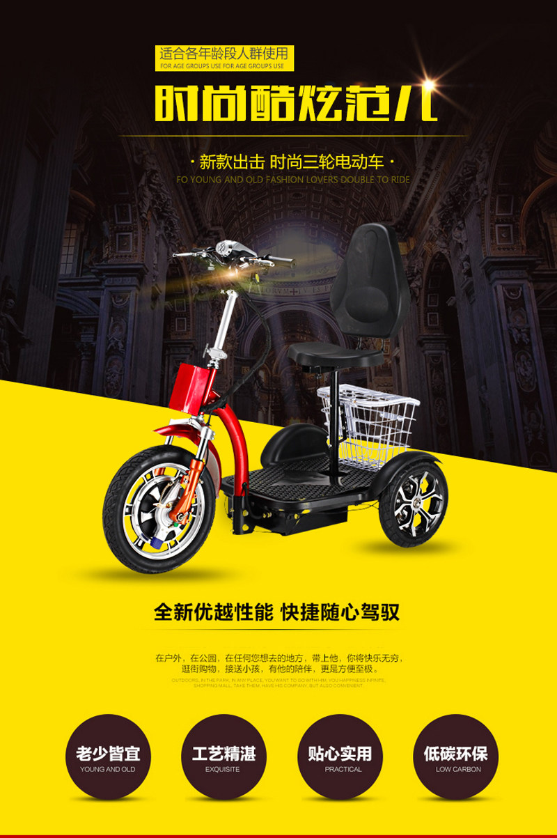 Электрический складной трехколесный простой модный самокат для пожилых людей