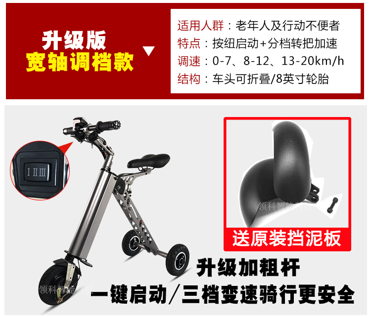 Портативный складной сверхлегкий электромобиль, трехколесные электрические ходунки для пожилых людей для взрослых, беговел подходит для мужчин и женщин