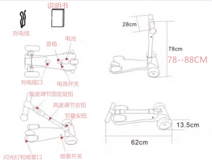 Мигающий спрей, самокат, складной Бибикар Толокар Плазмакар
