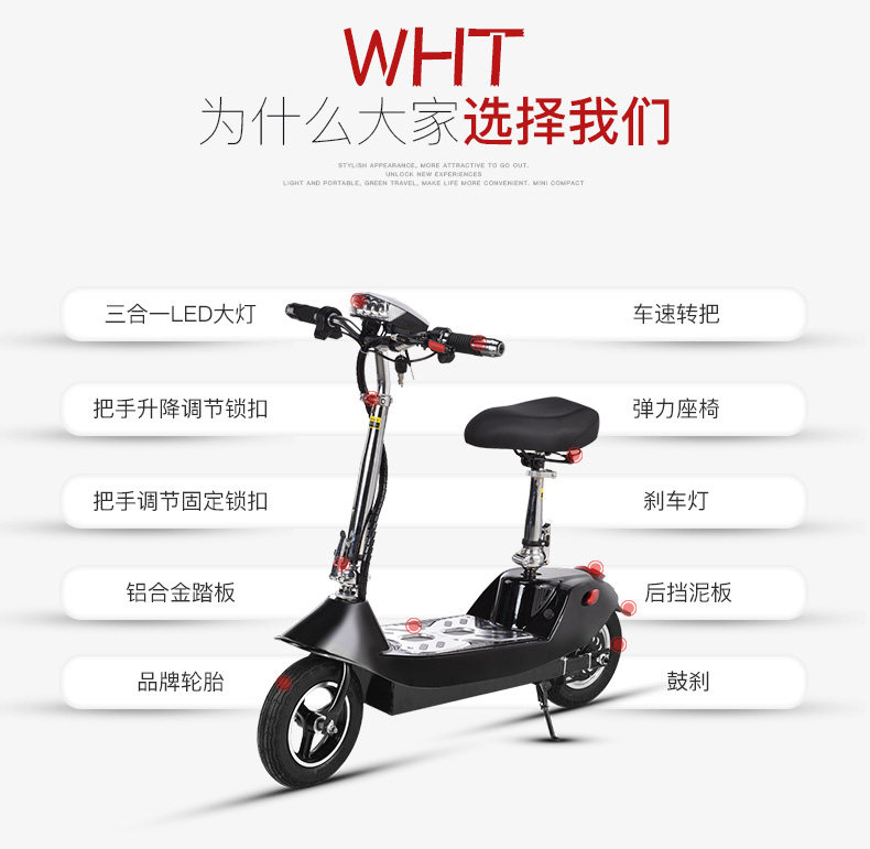 Электрический самокат для взрослых, литиевые батарейки, маленький складной электромобиль для пожилых людей для школьников, 10 дюймов
