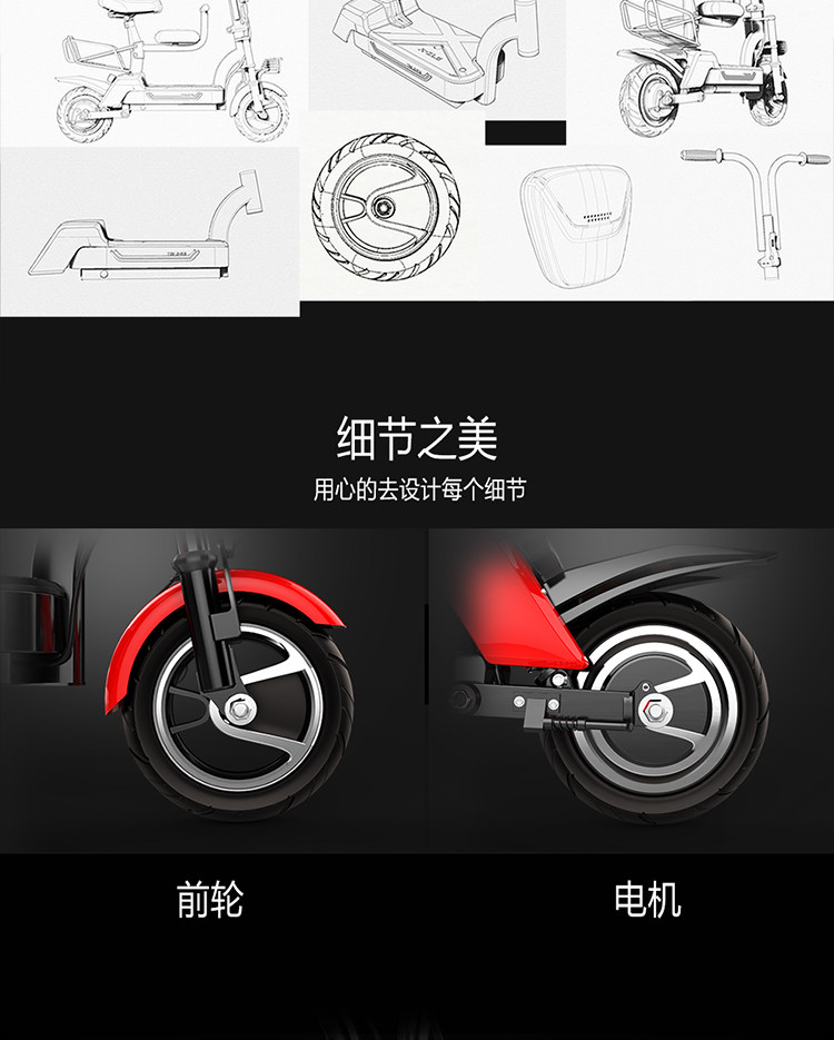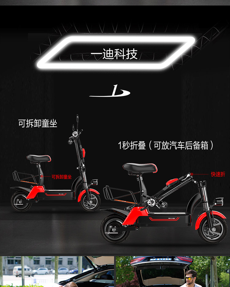 Электрический самокат для взрослых, маленький велосипед тандем, складные литиевые батарейки, электромобиль, семейный стиль