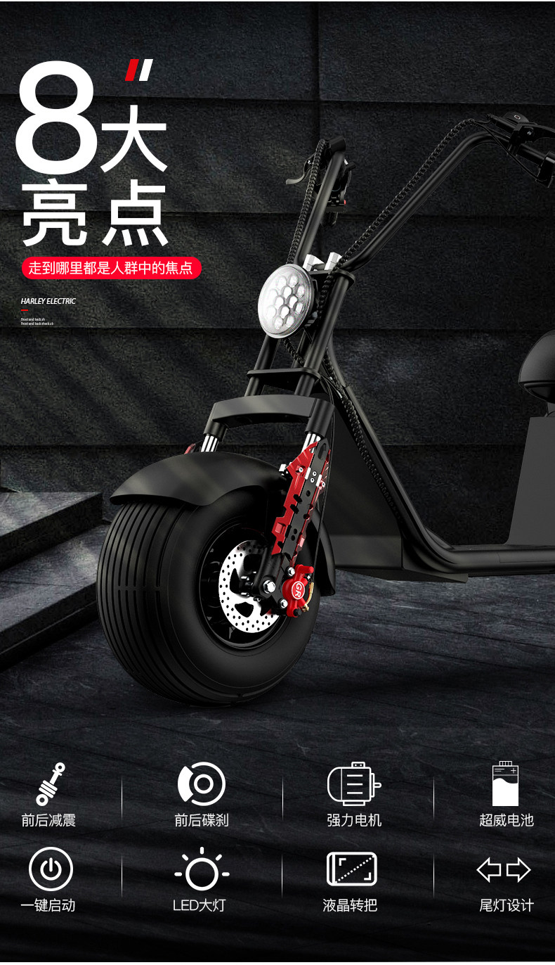 Электрический самокат для взрослых, ходунки для пожилых людей, шины, электромобиль, батарея, большой аккумулятор, 2000W