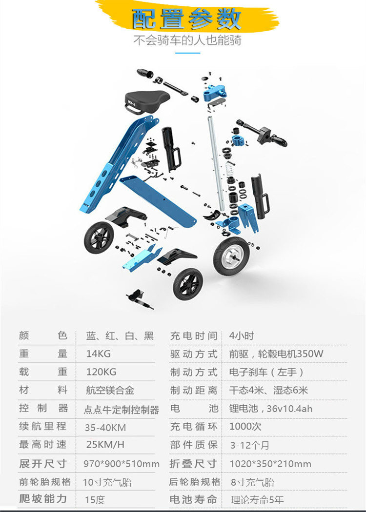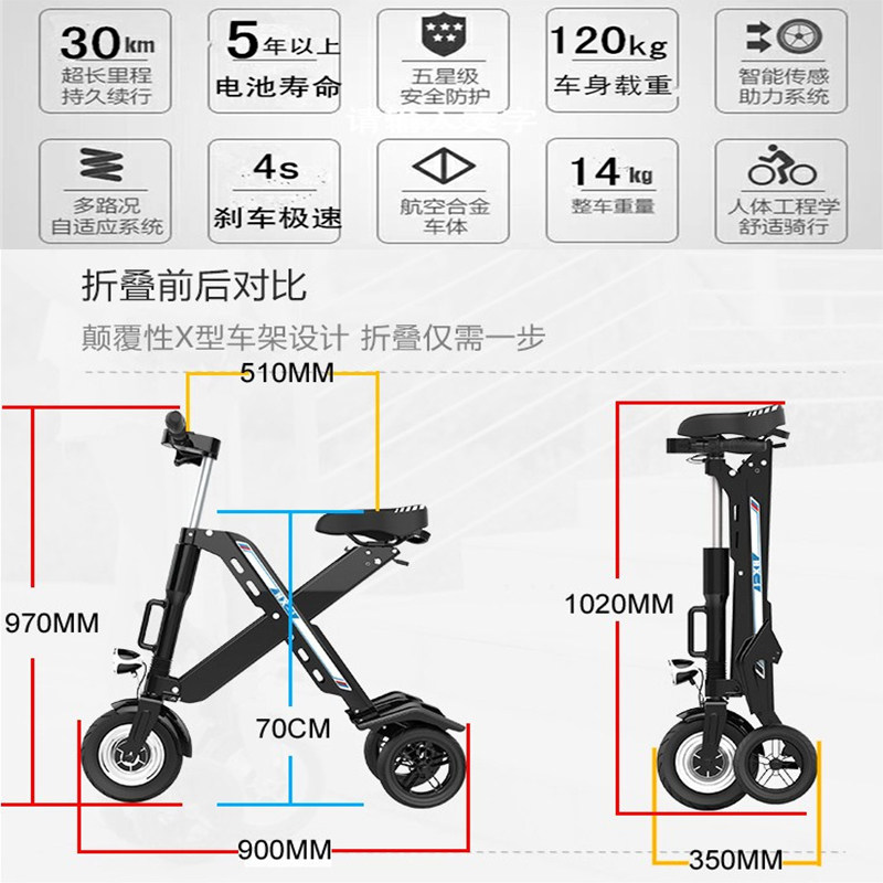 Складной маленький электромобиль, литиевые батарейки, ходунки для пожилых людей для взрослых, сверхлегкий трехколесный велосипед