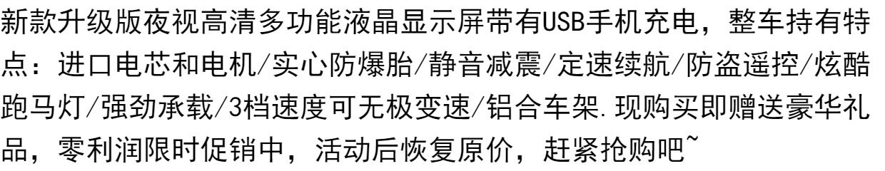 | Цвет: | Phantom Black 50 километров (импортная батарея) лошадь., Призрачный черный 60 километров (импортная батарея) лошади., Phantom Black 70 километров (импортная батарея) лошади., Phantom Black 80 километров (импортная батарея) лошадь., Призрачный черный 100 километров (импортная батарея) лошадь., Принесение ↑ 50 километров (импортная батарея) пульт дистанционного управления/лошадь бег света/USB/фиксированная скорость/подарок амортизации/амортизации, Принесение ↑ 60 километров (импортная батарея) пульт дистанционного управления/лошадь бег свет/USB/фиксированная скорость/подарок амортизации., Принесение ↑ 70 километров (импортная батарея) пульт дистанционного управления/лошадь бег с помощью света/USB/фиксированная скорость/амортизатор подарок, Принесение ↑ 80 километров (импортная батарея) пульт дистанционного управления/лошадь бег свет/USB/фиксированная скорость/подарок амортизации., Принесение ↑ 100 километров (импортированная батарея) пульт дистанционного управления/лошадь бег свет/USB/фиксированная скорость/подарок амортизации/амортизатор, 2 километра без подарков |