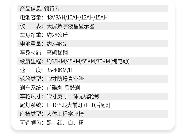 | Цвет: | 8A срок службы батареи около 30-35 километров [поместите заказа зарегистрирует черный красный и белый розовый]], 10A срок службы батареи составляет около 40-45 километров [поместить заказа замечания черно-белый розовый]], 12A срок службы батареи около 50-55 километров [поместить заказа замечания черно-красного и белого розового]], Срок службы батареи 15A составляет около 65-70 километров [поместить заказ замечания черно-красного и белого розового]], Голый автомобиль не содержит контроллеров батареи крупные клиенты специальность |