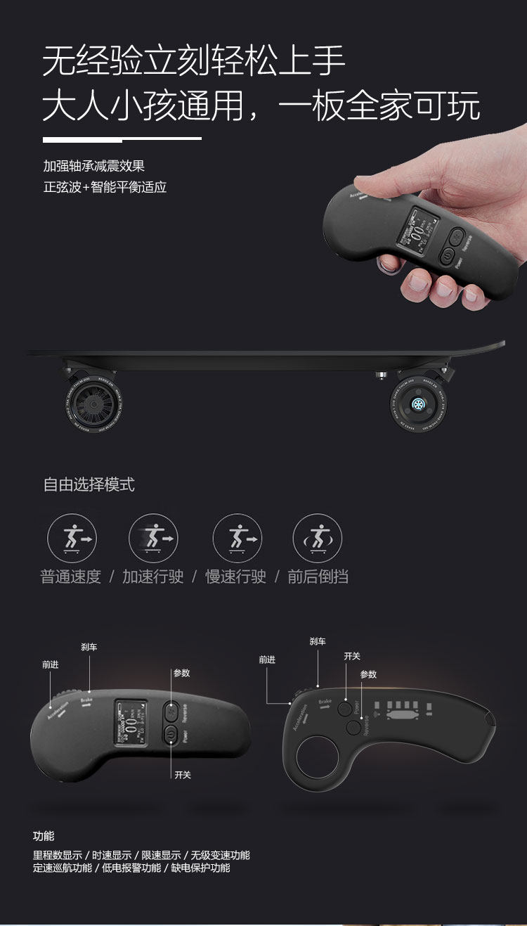 Электрический скейтборд для пожилых людей, большой четырехколесный автомобиль для начинающих, дистанционное управление