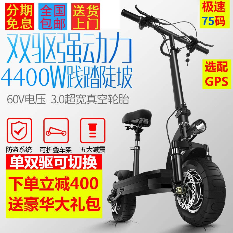 Высокоскоростной электрический внедорожный складной маленький самокат, 60v