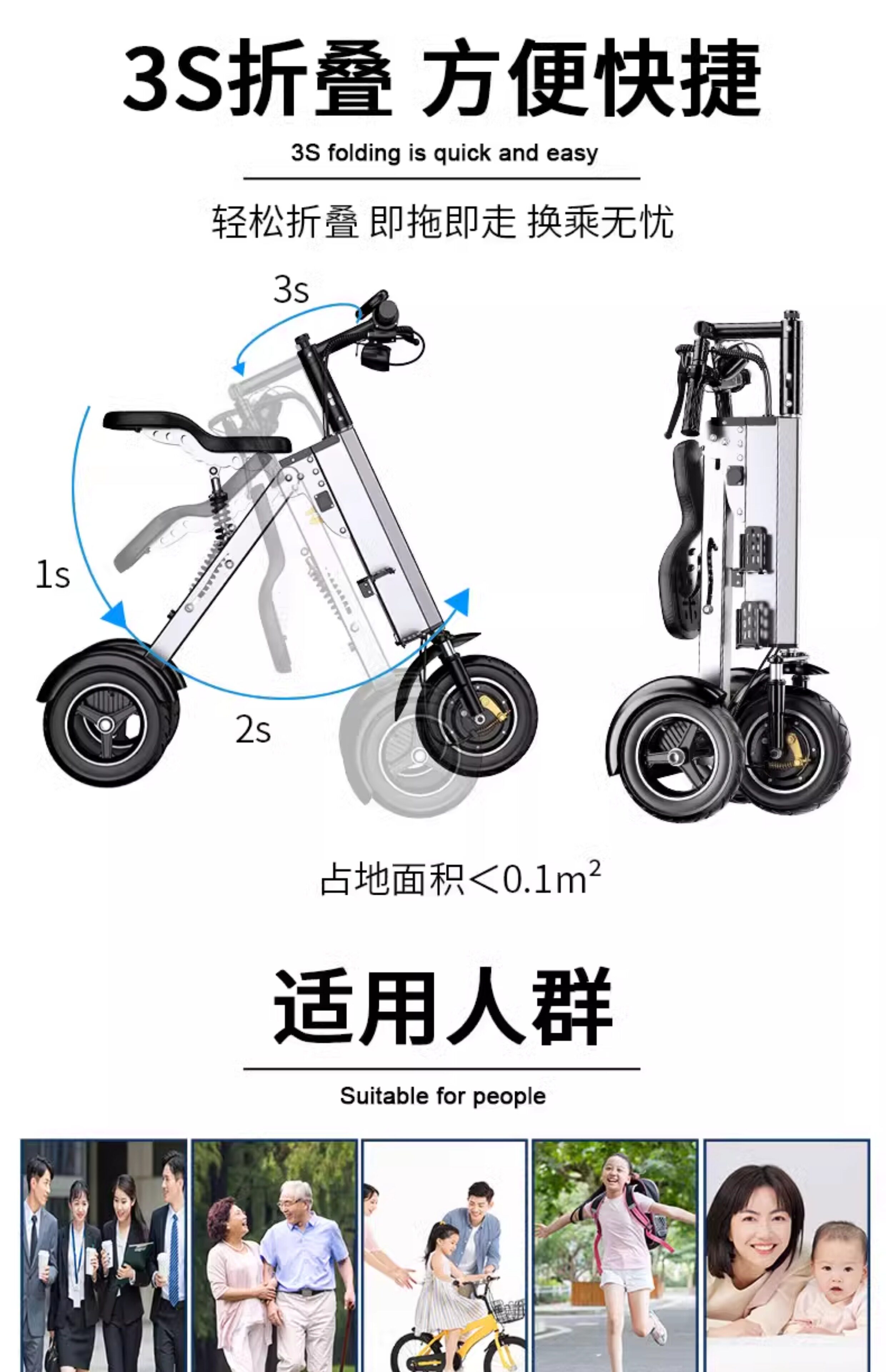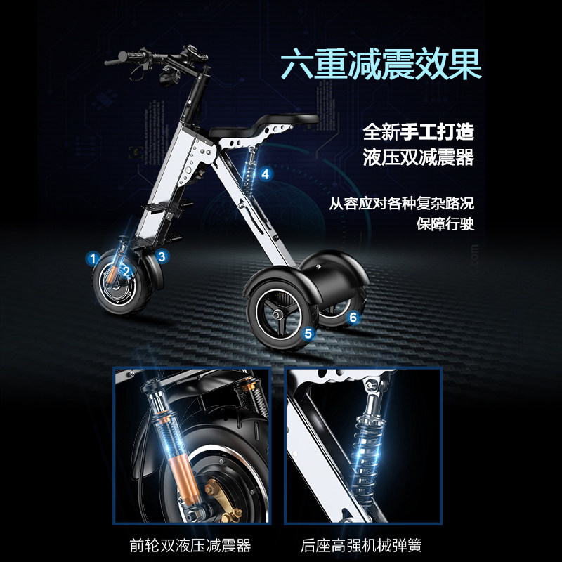 Складной электромобиль, портативный велосипед тандем, маленькие трехколесные ходунки для пожилых людей, семейный стиль
