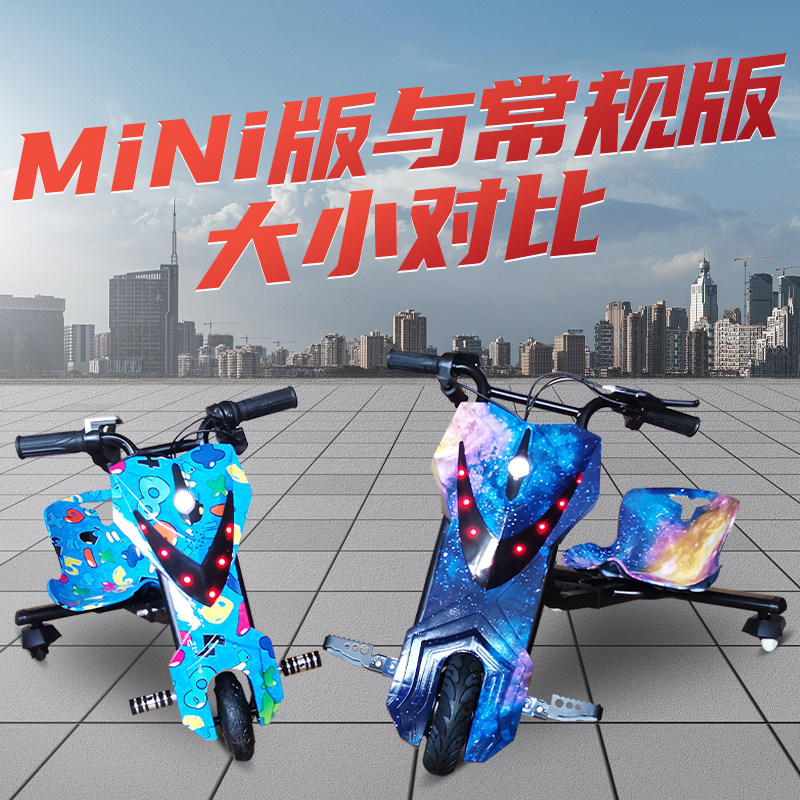 Неоновый электрический трехколесный детский дрифт-кар с педалями, маленький картинг