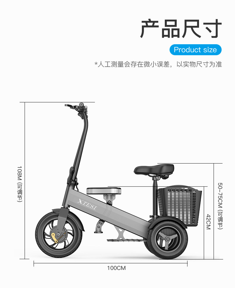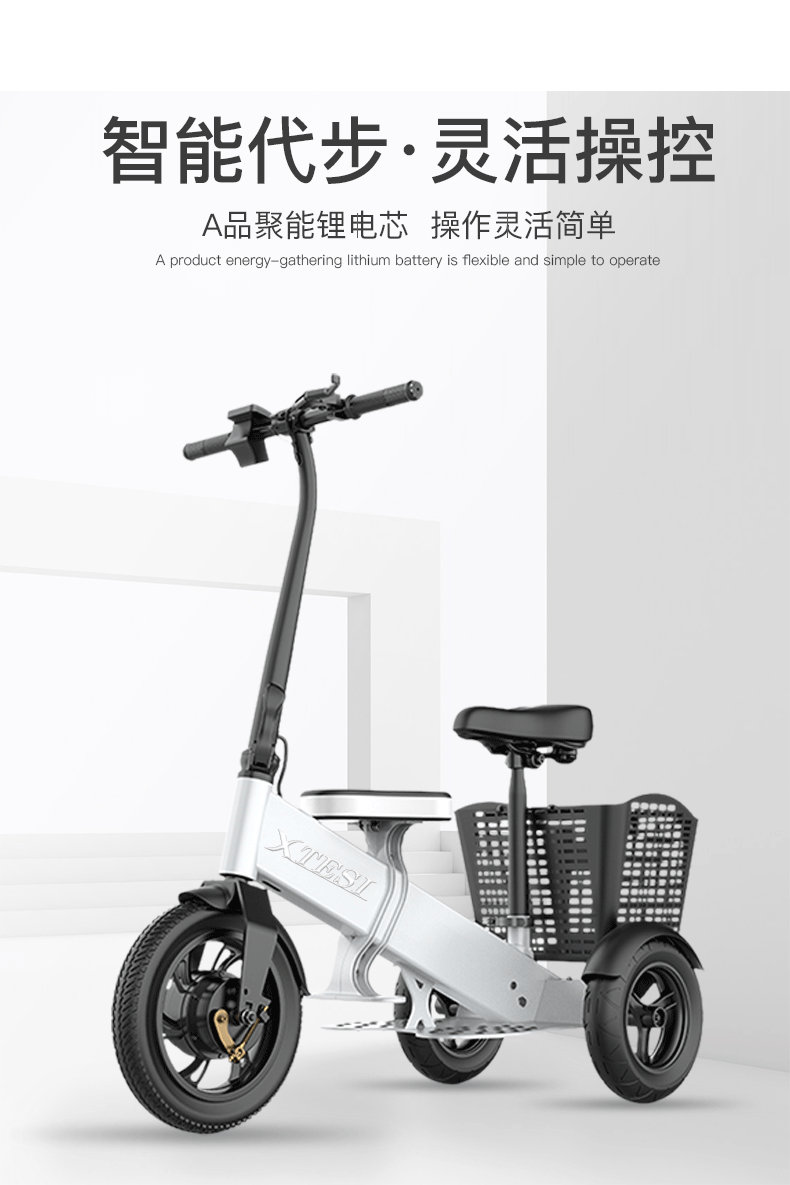 Складной трехколесный электромобиль, скейтборд для пожилых людей, семейный стиль