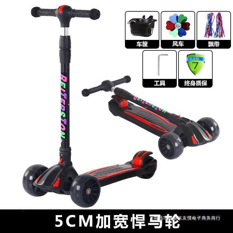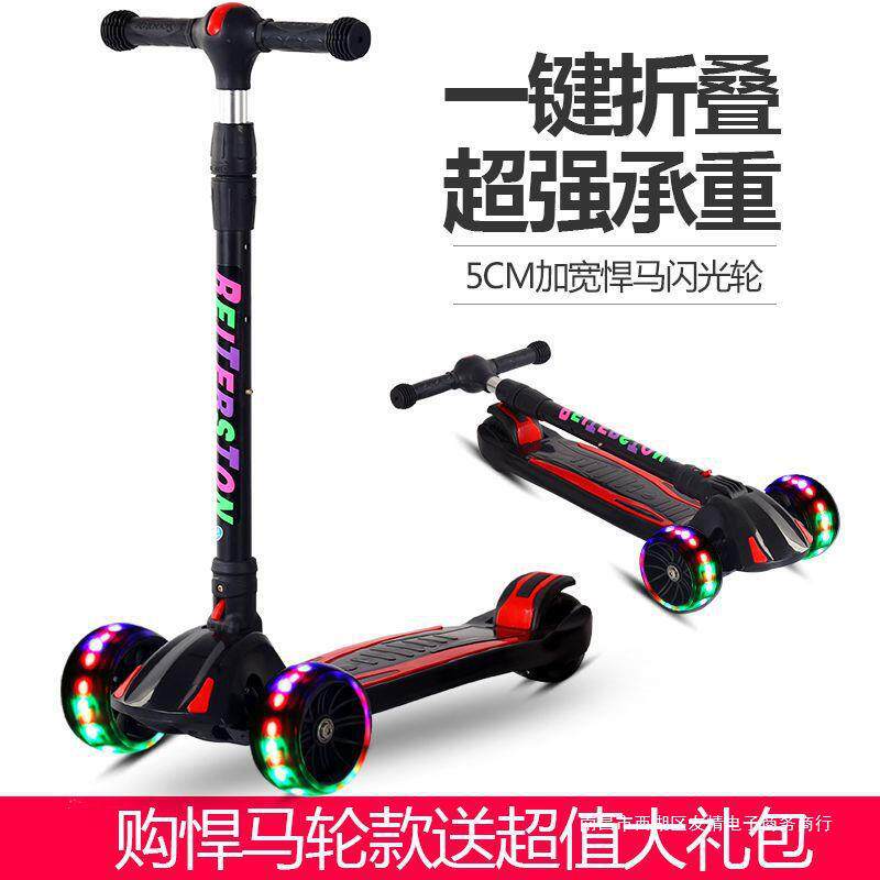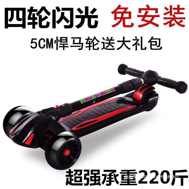 Складной мигающий детский самокат на четырех колесах, 2-12 лет