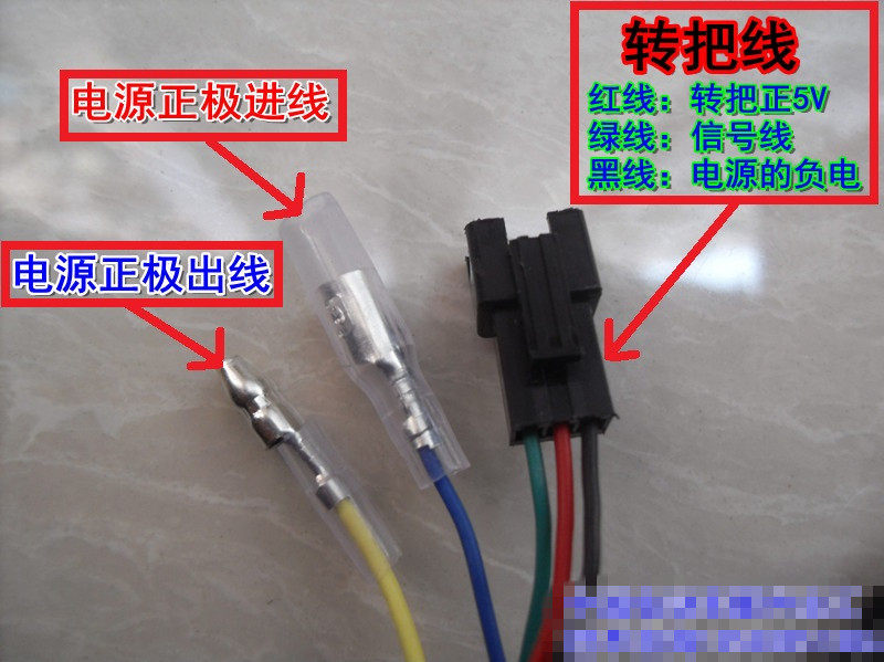 Метод проводки:Три свернутых руля подключены к руле контроллера (красный - положительный полюс руля, зеленый - это линия сигнала руля, а черная - отрицательная линия руля).Вращение переключателя делится на 4 проволочных переключателей. Это переключатель управления. При его открытии вы можете управлять электричеством. Закрытие - это режим реализации. Как правило, он используется для предотвращения ошибок при продвижении электромобиля.