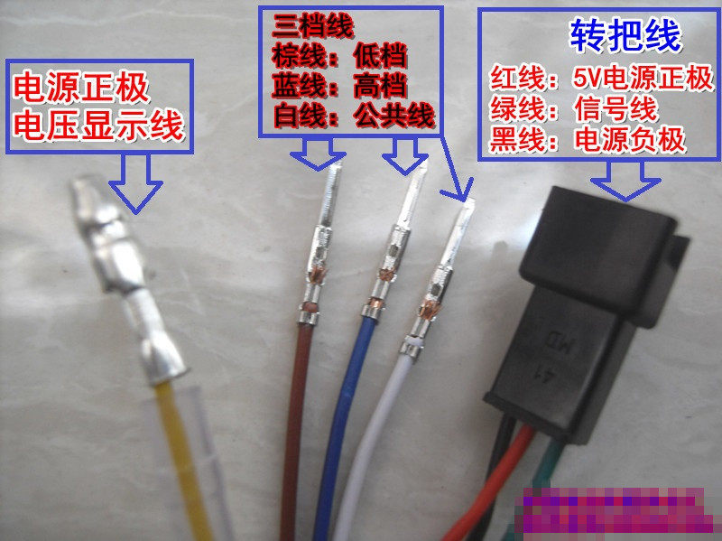 Метод проводки:Три свернутых руля подключены к руле контроллера (красный - положительный полюс руля, зеленый - это линия сигнала руля, а черная - отрицательная линия руля).Вращение переключателя делится на 4 проволочных переключателей. Это переключатель управления. При его открытии вы можете управлять электричеством. Закрытие - это режим реализации. Как правило, он используется для предотвращения ошибок при продвижении электромобиля.