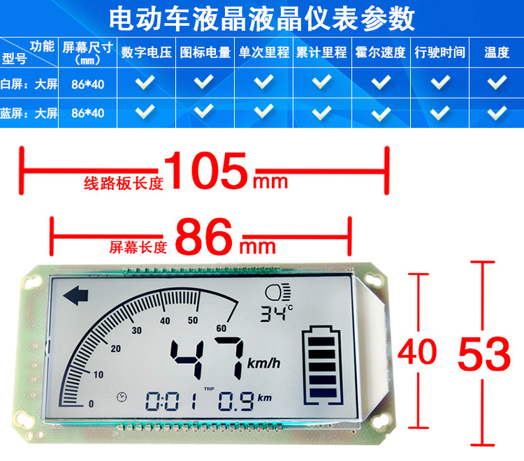 Модификация электромобиля ЖКД -приборного экрана Время пробега скорости температуры Экран Электрический Экран Белый экран Синий экран 48V60V72