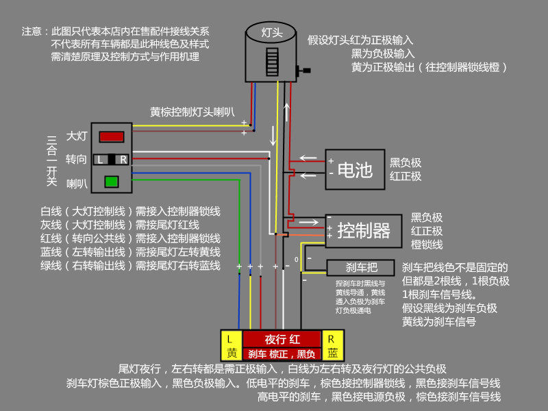 [Вместе]: 1. Тормозный свет является черной линией отрицательного электрода, зеленая или (коричневая) линия является положительной.