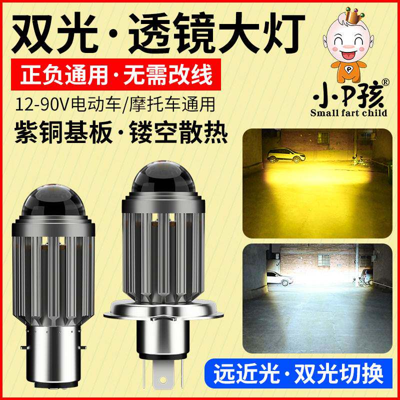 Свет для электромобиля, линза для мотоцикла, супер яркий белый свет, желтый свет, три когтя H4, сильный свет, светодиодная большая лампа, прожектор дальнего и ближнего света