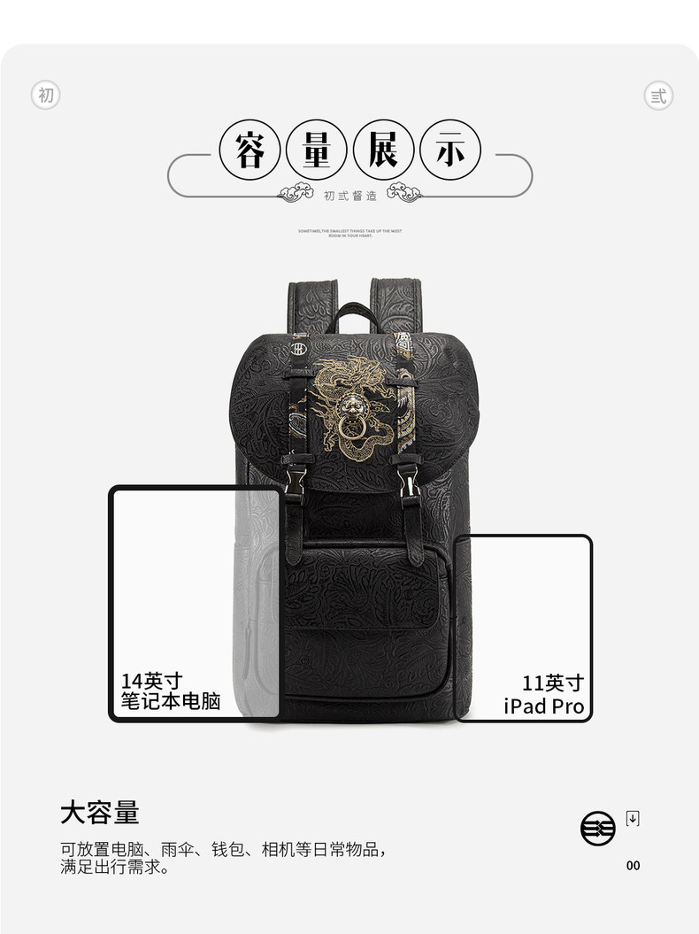 初弎 Рюкзак, вместительный и большой ранец для отдыха, сумка, китайский стиль