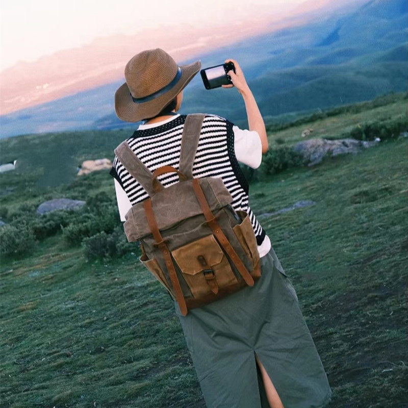 Водонепроницаемый холщовый дорожный рюкзак с перцем и солью, американская ретро уличная спецодежда, альпинистская сумка, компьютерный рюкзак для мужчин