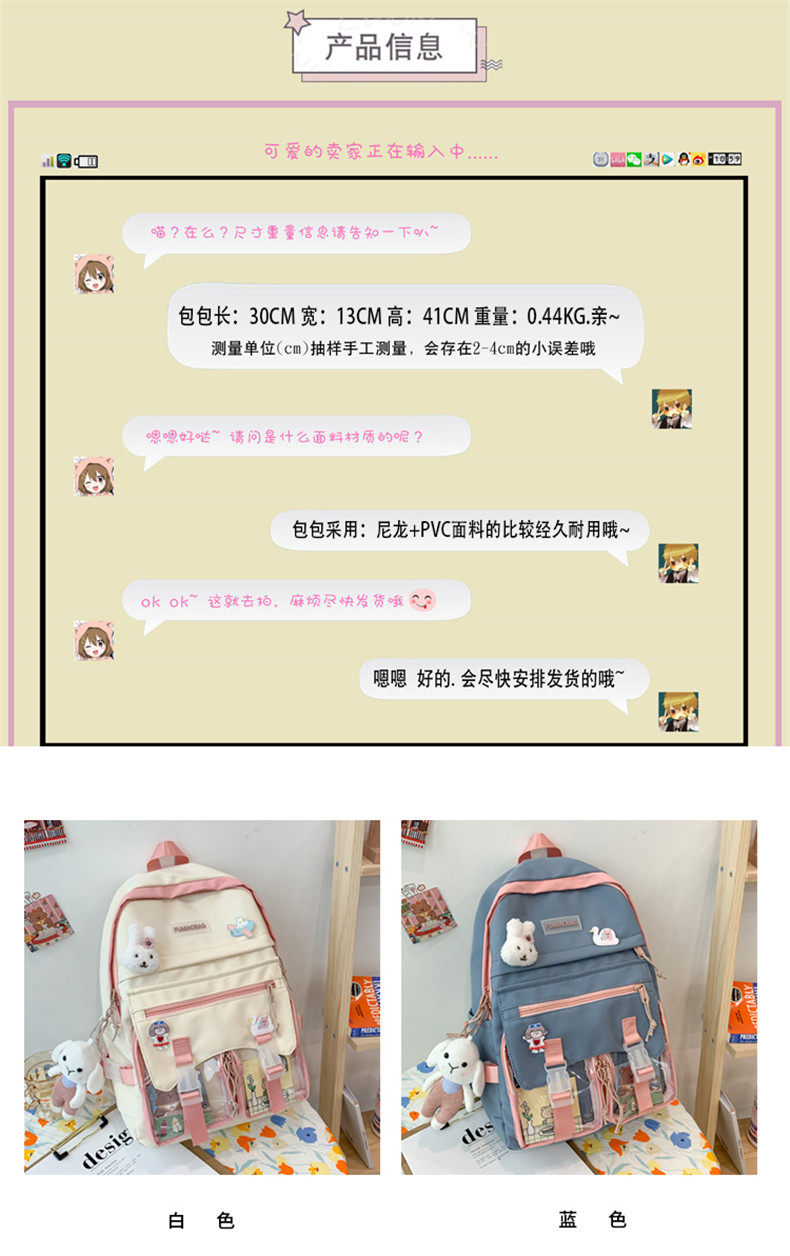 Рюкзак, ранец, милая белая сумка через плечо, в корейском стиле