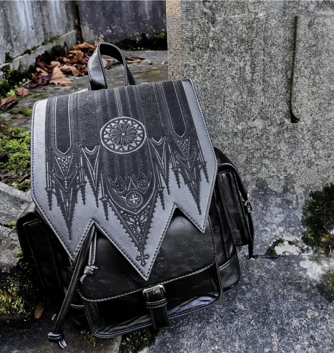 Готическая розетка рюкзак с карманами инвертированной соборной вышивки