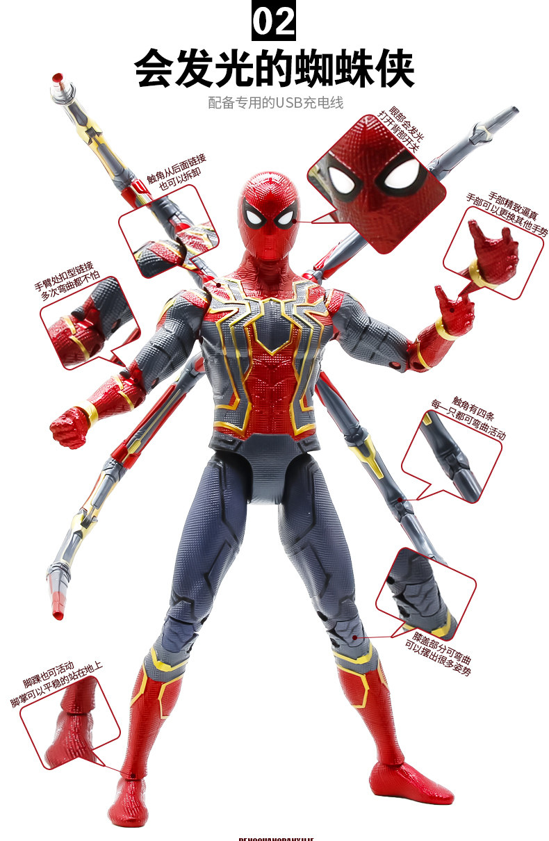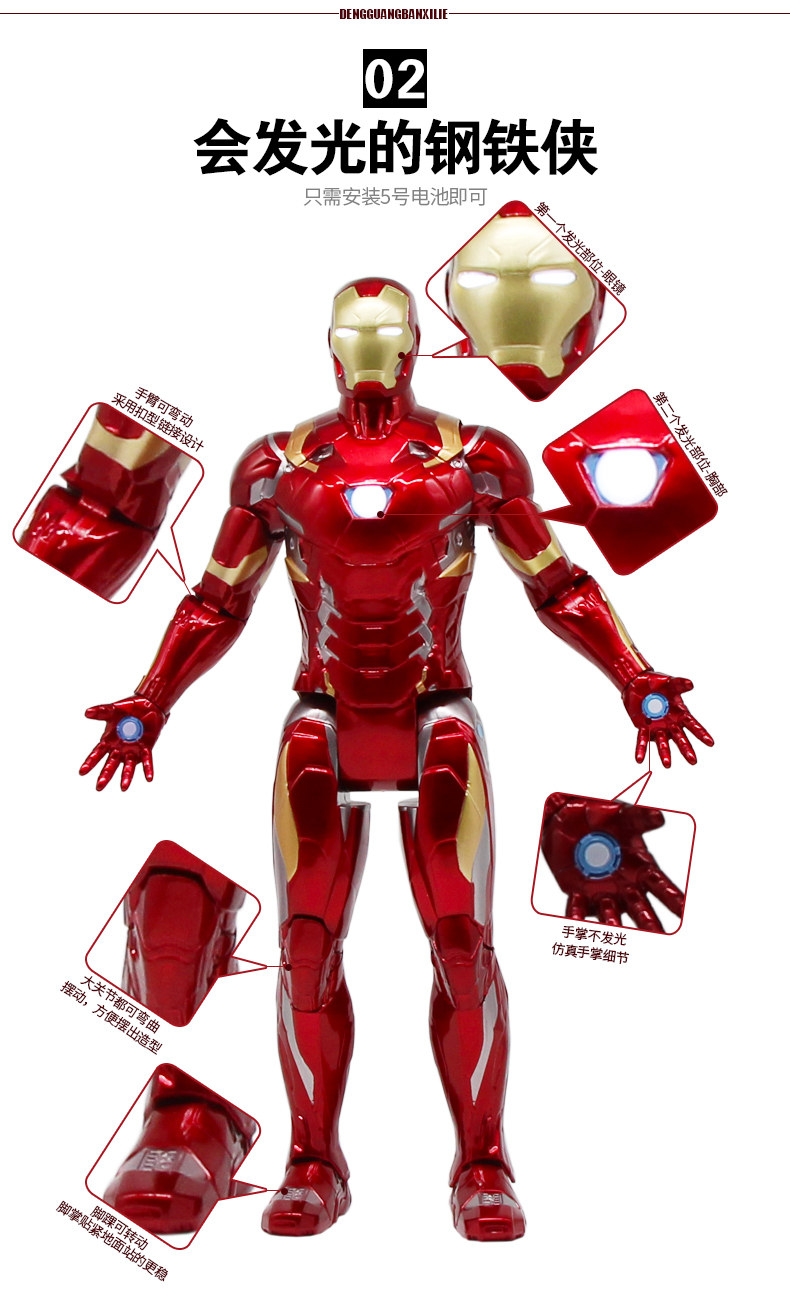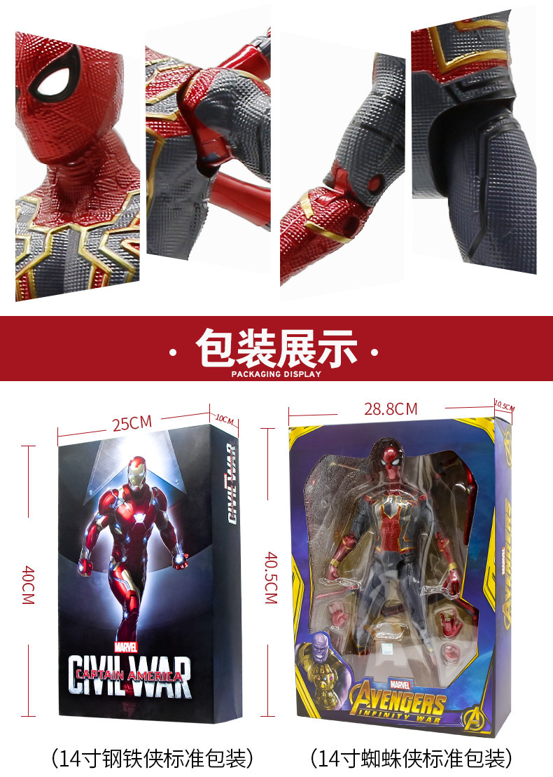 Мстители, большая фигурка, светящаяся игрушка, Марвел, Железный Человек, Человек-паук