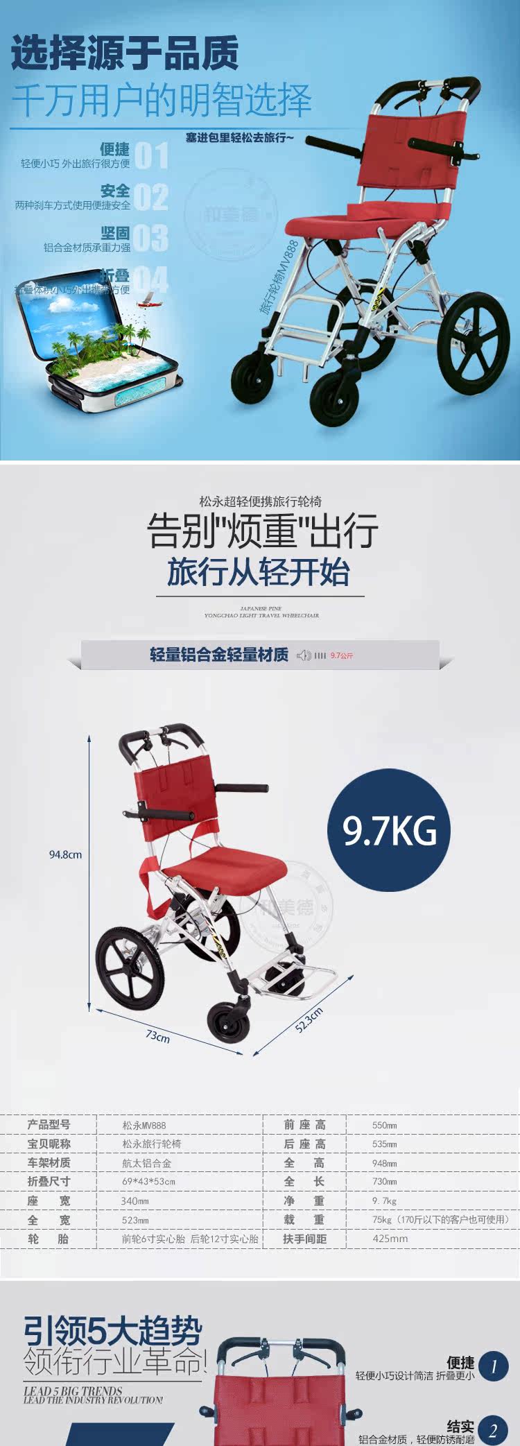 Японский мацуя MV-888 старик инвалидным коляскам складывает легкая портативная инвалидная коляска алюминиевый сплав пожилой коляска без судоходства.