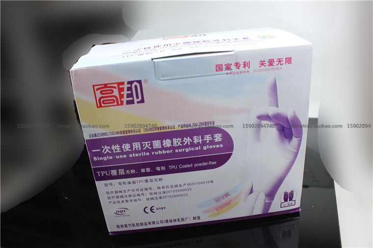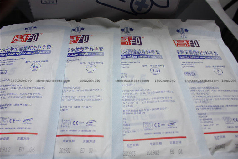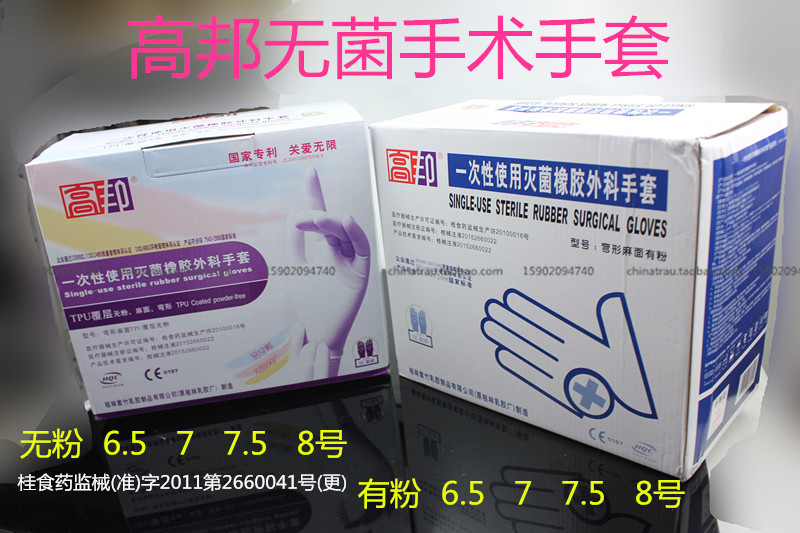 Zizhu Gaobang Медицинская одноразовая хирургия перчатки стерильные резиновые перчатки есть порошок 6,5 7,0 7,5 8
