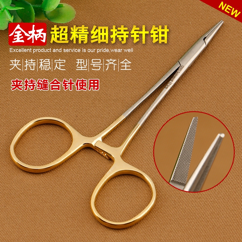 Золотая ручка, инкрустированная иглой, пластиковая хирургия красоты, двойная хирургия для век из нержавеющей стали с зажимом зажим зажима зажима зажима ручного блода.