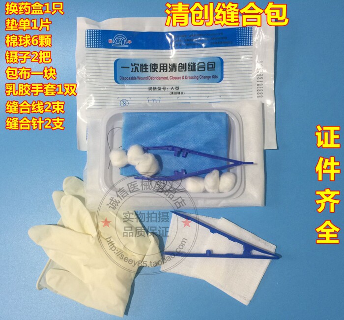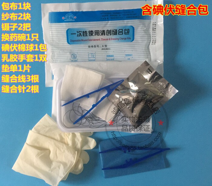 В этом продукте есть одноразовые пленочные перчатки, два близнеца, одна упаковка ватных шариков йода, один поднос, губка, два куска марли 6x6cmx8.