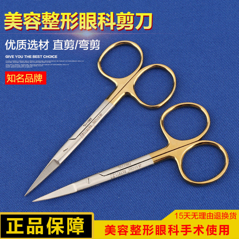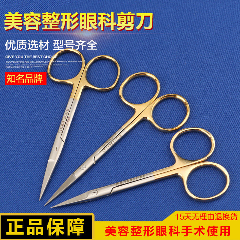 Золотая ручка двойной веки ножницы тонкие пилообразные ножницы и офтальмология прямая головка локоть красота пластиковая хирургия ножницы
