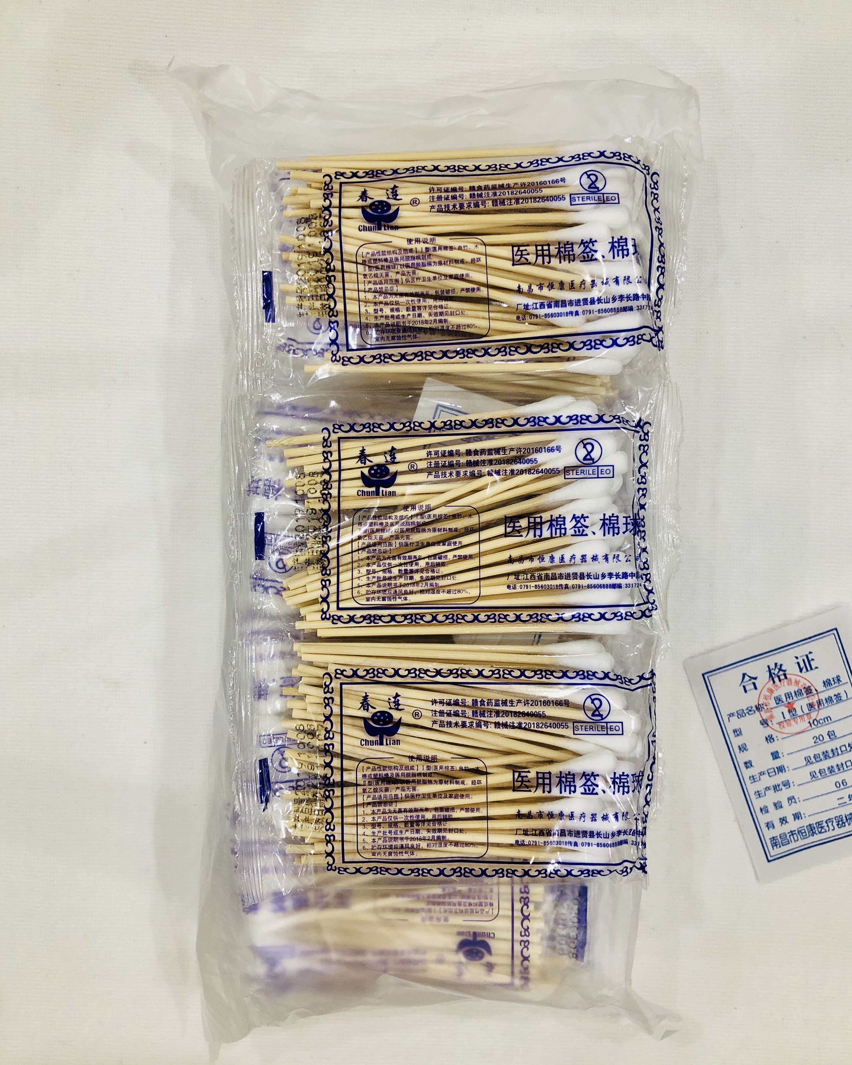 Одноразовые антибактериальные ватные палочки, 10см