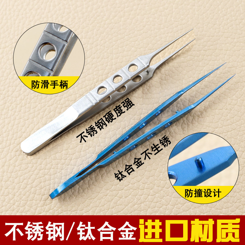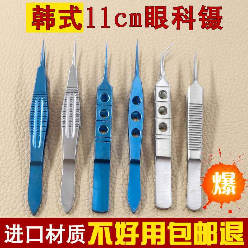 Инструменты для микрохирургии глаз. Пинцет с прямым локтем из нержавеющей стали. Инструменты для пластической хирургии для удаления швов с двух век с плоским пинцетом с зубцами.