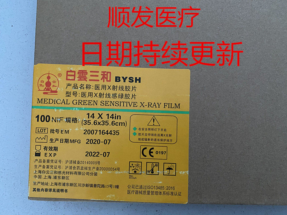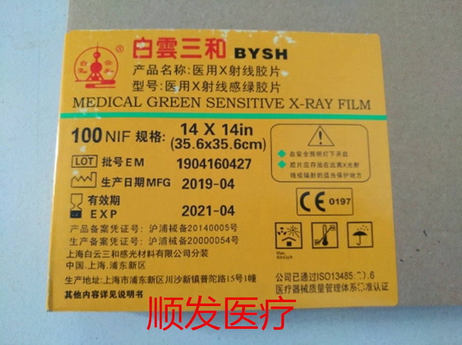 Shanghai Baiyun Sanhe x -ray Film Sensory Green Film 14*14 X -Ray Film 100 штук на коробку
