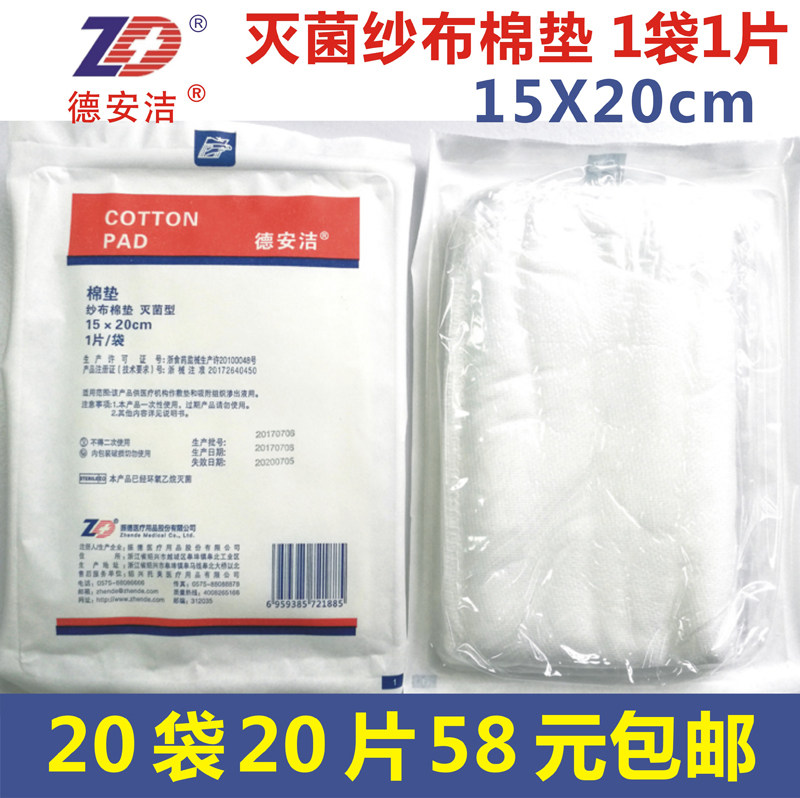 Deanjie стерилизованная медицинская марлевая хлопчатобумажная панель хлопчатобумажной панель 15x20 см 1 таблетка/сумка 20 мешков Бесплатная доставка