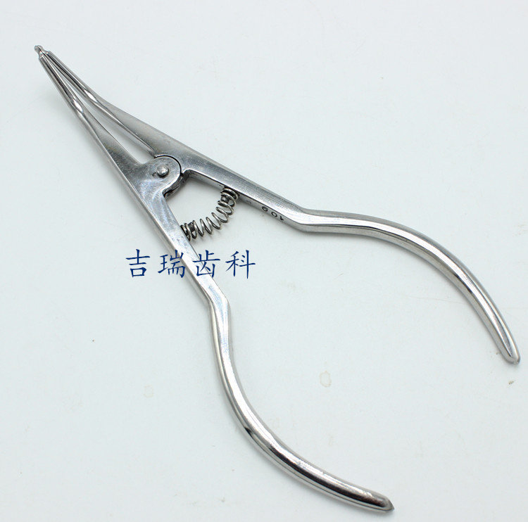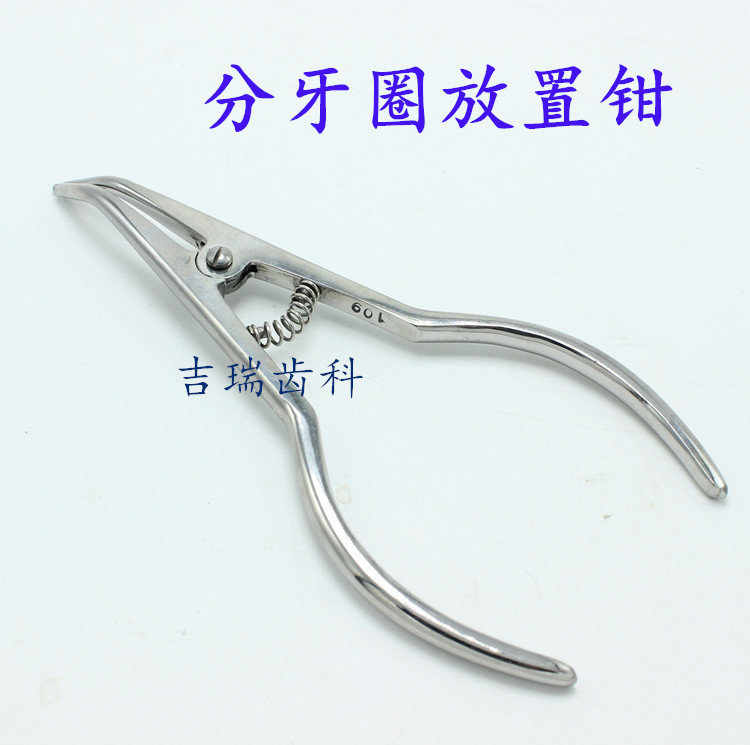 Поставить щипцы на зубы зубные кольца. Размещение резинового кольца Поместите плоскогубцы ортодонтические ортодонтические инструменты, чтобы открыть плоскогубцы