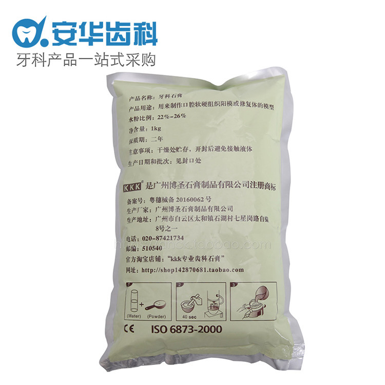 Расходные материалы зубного материала Гуанчжоу штукатурка KKK/Mg Gypsum Super Hard Gypsum Oral Model Gypsum 1 кг/пакет Post