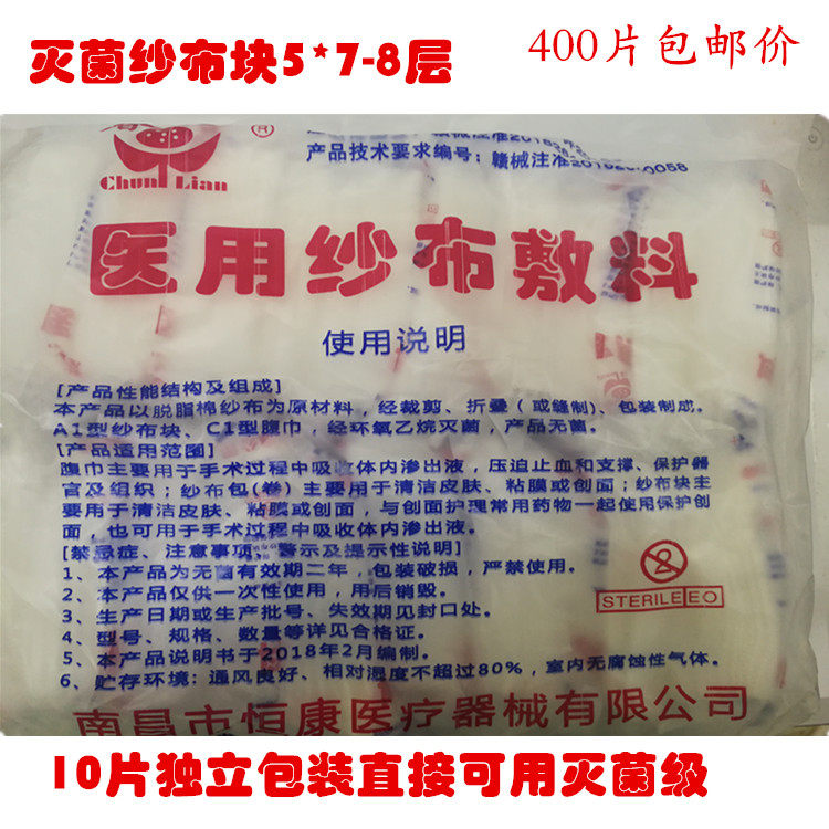 Медицинский марлевый блок Стерилизатор Стерилизованный марлевые таблетки 10 Независимые пакеты 5 см*7 см 8 -слойные 400 кусочков бесплатной доставки пружины