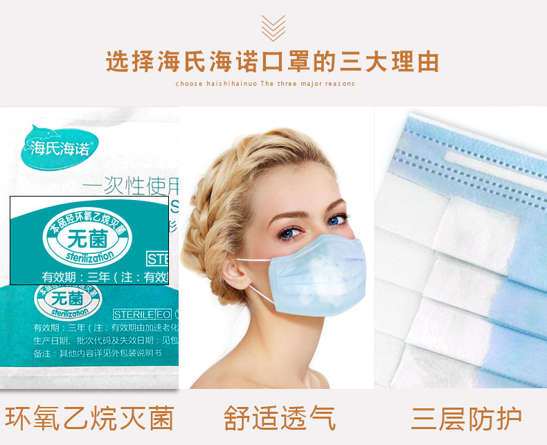 海氏海诺 Медицинская одноразовая хирургическая стерильная маска 50 Стерилизация, пылепроницаемая, воздухоистойная, холодная, холодная, анти -литровая, толстая и независимая