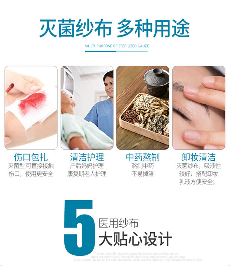 Медицинская марляторная стерильная стерильная стерилизация Дезинфекция одноразовая лекарство от песчаной ткани для обезвоживаемой хирургии раны хлопка.