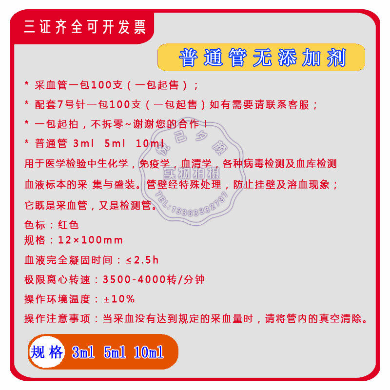 Обычная не сдача трубка 3ml5ml10ml Медицинское одноразовое отрицательное отрицательное давление стерильная биохимическая трубка красная шляпа