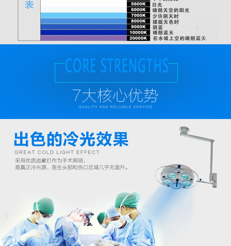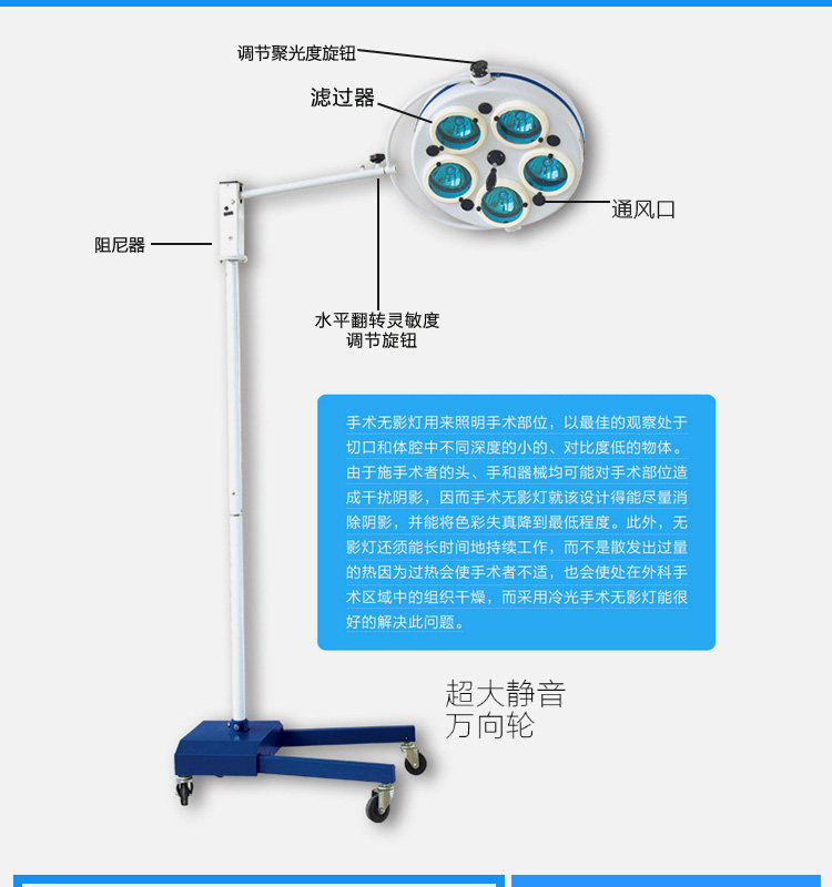 Пять -дыра -стенда -на мобильную стену с хирургическим световым световым световым светодиодом.
