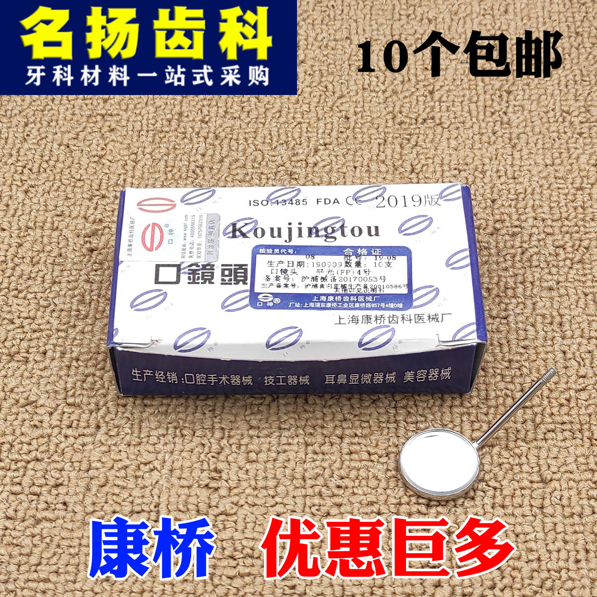 Стоматологический материал Аутентичный порт линзы Шанхай Канцциаоку, ручка рукоятки плоского светового бутика Увеличенная линза из нержавеющей стали