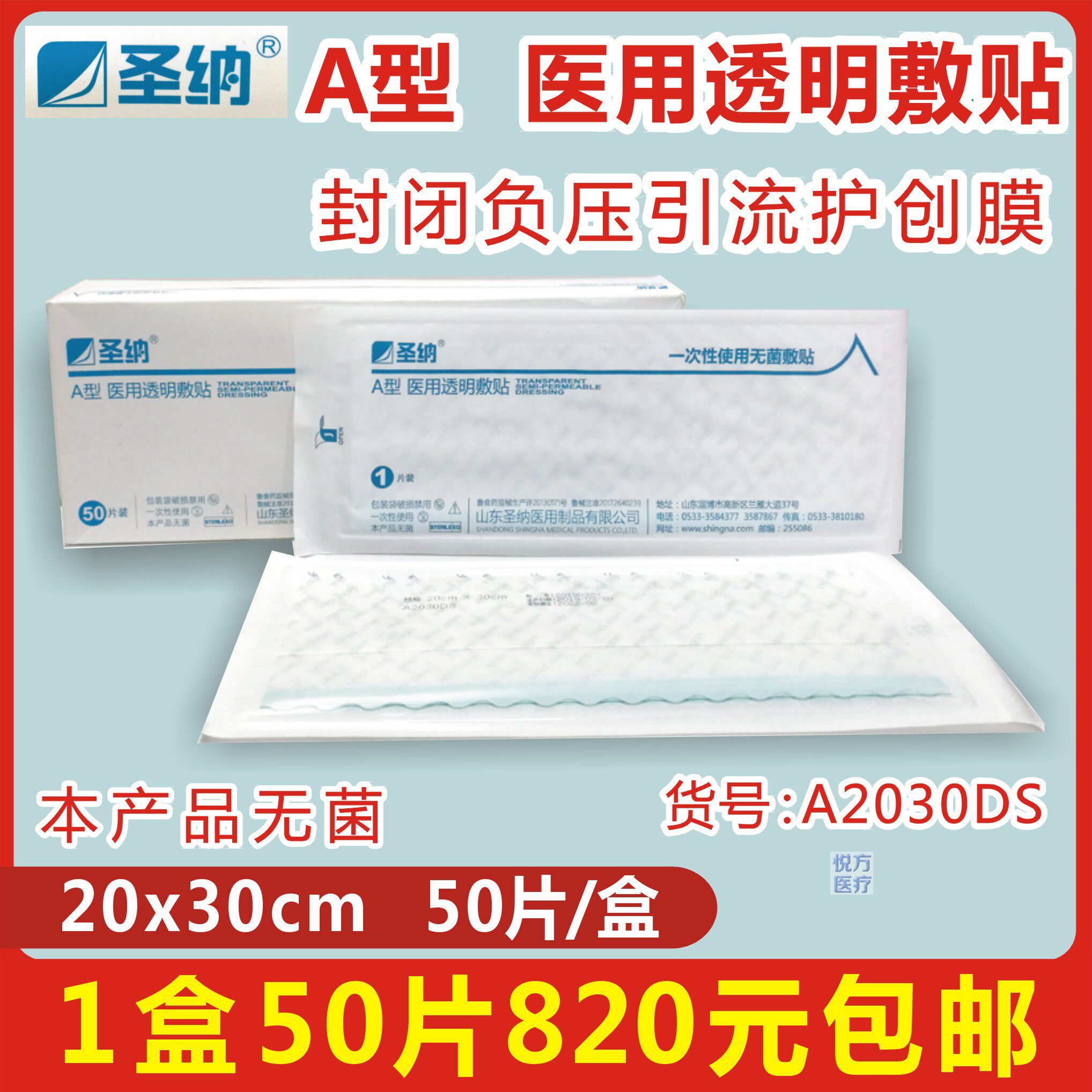 Медицинское прозрачное применение San Na -Type 20x30 см Асептическое водонепроницаемое антибактериальное отрицательное давление пленка 1 коробка 50 Таблетки бесплатная доставка