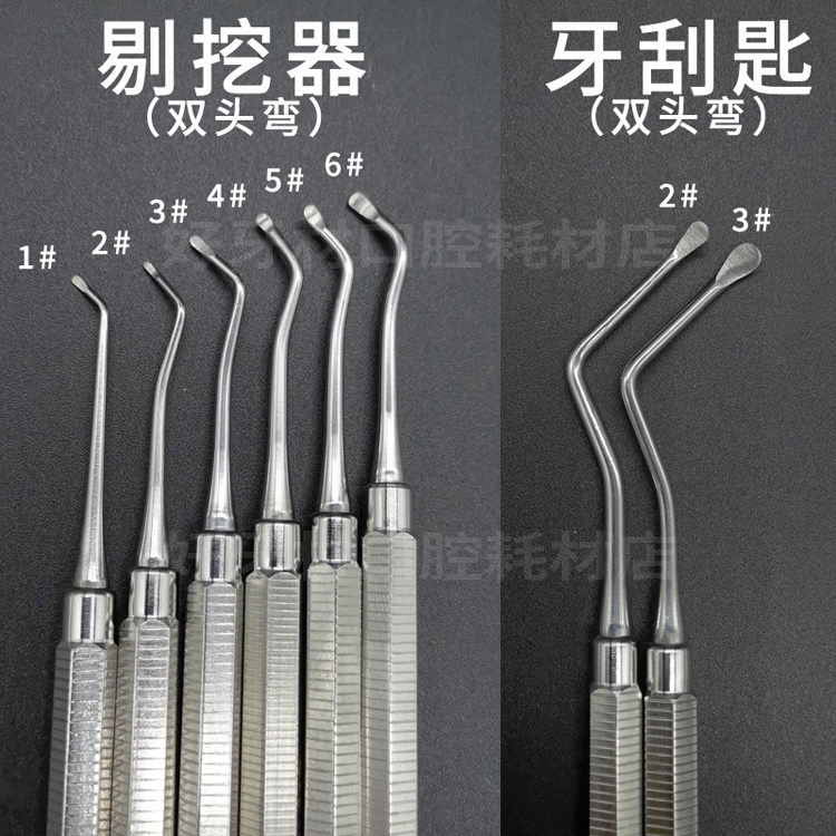 Сокращенный зубной экскаватор Kangqiao Экскаватор копает ложку, скребок размера, оральный Wei Rong Scrape зубы с помощью двухголового чистящего устройства