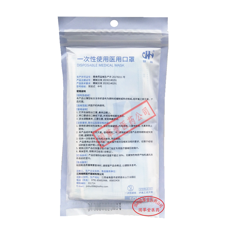 Jinhui использует 10 медицинских масок одновременно/сумки три слоя стерилизации, стерилизации, стерильная стерильная среда, медицинская маска